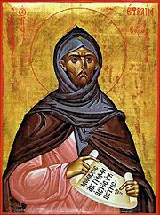Um dia, enquanto Efrém passeava pelo caminho, surgiu uma meretriz de emboscada para seduzi-lo ou, ao menos, para provocá-lo, posto que ninguém o havia visto jamais preso pela ira. Ele a disse: "segue-me". Quando chegaram a um lugar muito movimentado, disse-lhe: "faz o que queres aqui, neste lugar". Mas ela, vendo a multidão disse: "como podemos fazer diante desta grande multidão sem sentir vergonha?" E ele respondeu: "se nos envergonhamos diante das pessoas, tanto mais deveríamos nos envergonhar diante de Deus que escuta no segredo das trevas. E ela, cheia de vergonha, afastou-se sem ter realizado o que pretendia.
