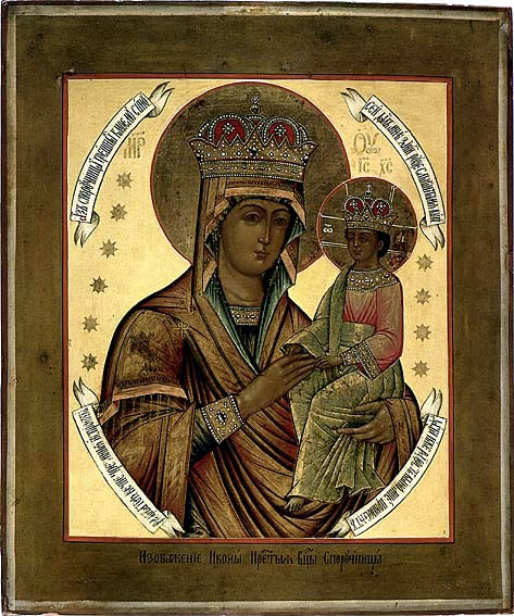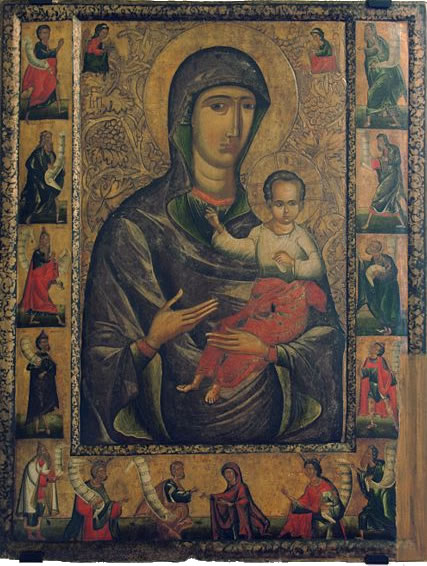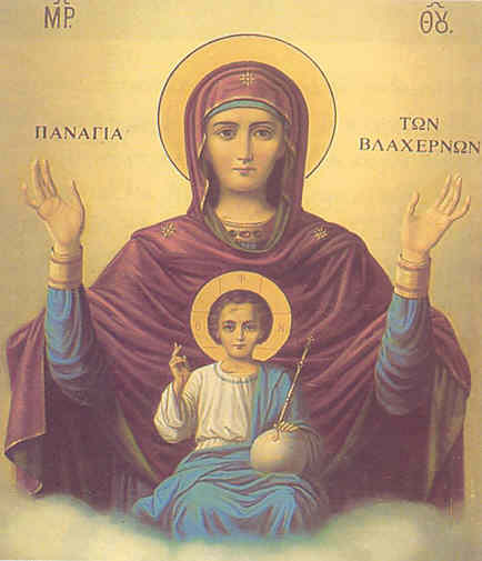 Essas representações se encontram não apenas em pinturas e mosaicos, mas também (e principalmente), nos chamados ícones devocionais. BlachernitissaApresenta um manto sobre sua cabeça e os braços estendidos para cima, indicando sua missão de intercessora e suplicante. PanaghiaRepresenta Maria como a Toda Santa. Nesta representação Maria e o Menino Jesus ostentam coroas, e ele aponta em direção à Maria indicando a sua santidade. Theotokos
